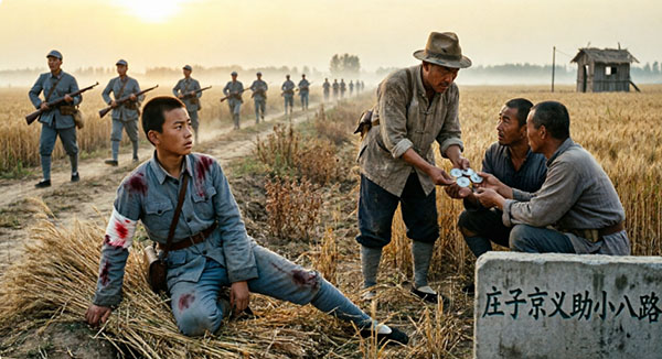 1940年秋,一名十四岁小八路负伤被困麦地,日军搜查严密无人敢救。庄子京不顾自身安危,自筹银元雇人连夜护送伤员归队,事后绝口不提回报。