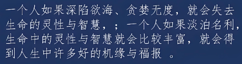 庄子说,大智慧的人辩论起来是悠然自得且十分自大;小聪明的人斤斤计较;雄辩的人气势凌人;口才不好的人絮絮叨叨。这些人的生活其实很不好过,他们睡不宁体不安,每天都耗费心思明争暗斗。有的人心思缓慢;有的人深不可测;有的人谨慎周密。小忧则惴惴不安;大恐则失魂落魄。有人说话如同射箭一般迅捷;专门找别人的是非发起攻击。有人沉默寡言,像遵守誓言一般慎重。人与人之间的心斗,对心的摧残是严重的,就像秋霜冬寒对生物造成的伤害。人类在无休无止的心斗之中消耗下去,一天天消瘦,但却沉溺其中无法回头……
