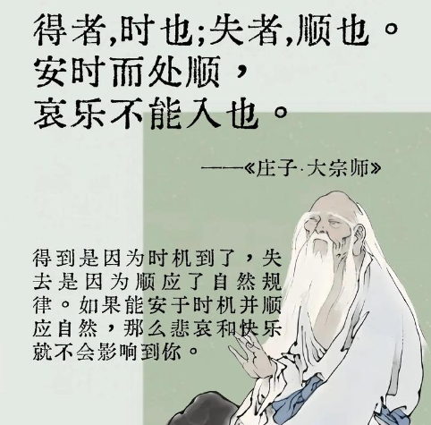 “真人”对生死态度方面的无喜恶,自然来去,无执念于存亡,如“翛然而往,翛然而来”。