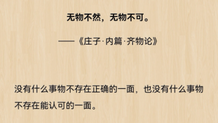 综上所述,以《齐物论》为核心的“平等”思想和以《逍遥游》中关于几种人描述的“等级”概念,是不少庄学爱好者常常用来讨论的矛盾点。通过研读庄子,我们从庄子著作和哲学思想中解开了疑云。这两者并不矛盾,而是庄子从不同角度开出的药方。